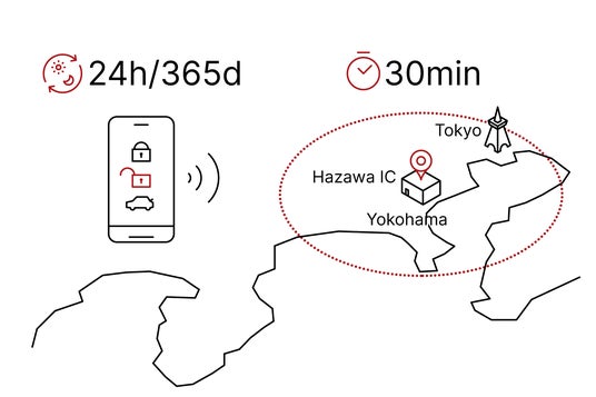 都内近郊から約30分でアクセス可能な場所(横浜市羽沢)に ランデヴー専用のガレージを用意。オーナー専用のアプリで、思い立ったときにすぐ利用できます。乗り換えたクルマはガレージにてお預かりします。