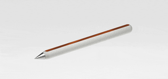 インクやリフィルが不要な秘密は、化学反応。ペン先の金属と紙による摩擦で、瞬時に紙を酸化させ、筆跡を残す仕組みです。