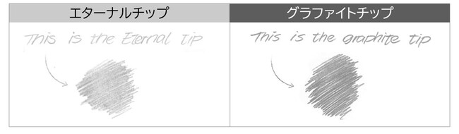 メタルチップと紙による摩擦による酸化で筆記する「エターナルチップ」と、黒鉛を混ぜた特殊合金により黒鉛で筆記する「グラファイトチップ」が標準装備。