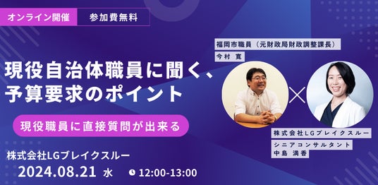 株式会社LGブレイクスルー(東京本社:東京都千代田区、代表取締役 古田 智子)は、自治体ビジネスを行う企業様向けに、2024年8月21日(水)にオンラインセミナーを開催いたします。
