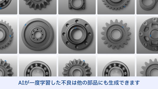 一度学習させた不良パターンは、形状の異なる部品にも適用可能です。例えば、ベアリングで学習した傷をその他の金属部品に生成したり、異なる部品でも素材が似ていれば同様の不良を生成したりできます。これにより、少ない学習データで多様な検査対象に対応できるため、開発コストと時間を大幅に削減できます。