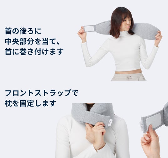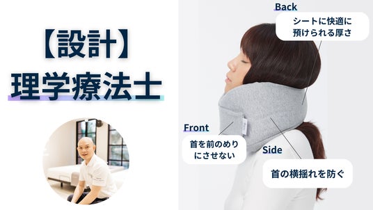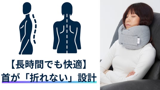 機内や車内の座席で快適な睡眠を取れるよう、360度から首を支えるデザインを考案。
