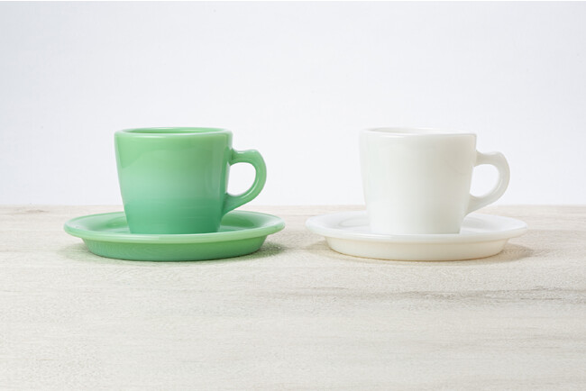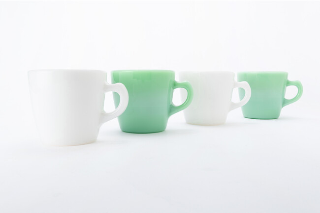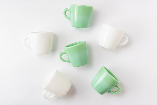 ヴィンテージ Fire-King と同じジェダイとミルクホワイトの2カラー展開でスタートします。
