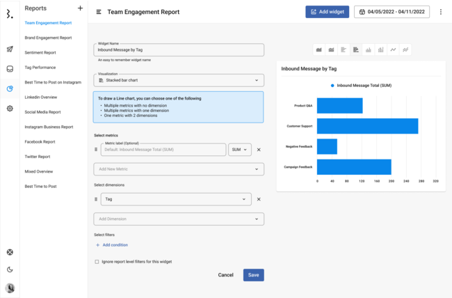 コンテンツの内容と受信メッセージ(コメントやDM)に基づいて、Statusbrew専用のタグを1つのメッセージ単位につき自動でアプライすると、Statusbrewの高機能アナリティクスで簡単にエンゲージメント・レポートを作成することができます。