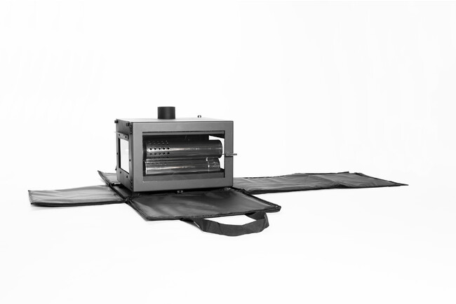 本体重量5.9kg、収納時のサイズ全辺30cm以下(幅29cm × 奥行き22.5cm × 高さ21.5cm)、煙突やアクセサリーもすべて炉内に収納可能。