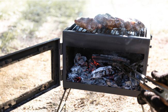 また、火の状態がわかりやすく、吸気口や扉を開けて火の調節ができるため、グリルとしても使いやすい構造です。