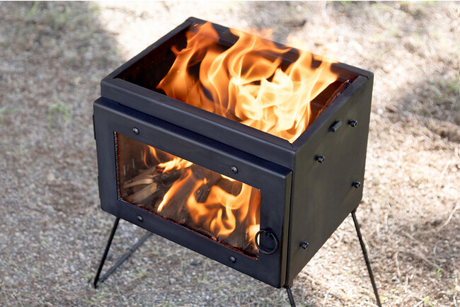 サイドのガラス窓から炎の様子が確認できるため、上から眺める焚き火とはまた違った火の見え方を楽しむことができます。
