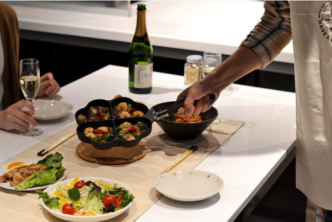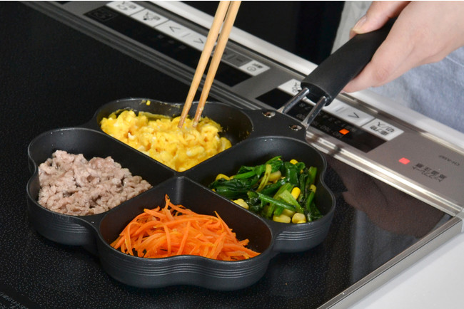 フライパンに仕切りを付けることで4種類の料理を一度に作れる「はぴはぴクックパン」を、2022年5月17日に発売いたしました。