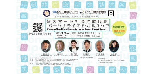 急速な高齢化や医療費の増大など、国民の健康管理に関わる多くの課題を解決するだけでなく、性別を問わず誰もが日常的に活躍しながら幸福な長寿を全うできる社会の実現を目指し、超スマート社会時代の新たなヘルスケアシステムが期待されています。ここでは、医療は病院だけで行われるものではなく、個人一人一人の日常のヘルスケアと融合し家庭や職場などに拡大していくものと想定されます。今般、東京工業大学は東京医科歯科大学と統合いたしますが、これを契機とし超スマート社会推進コンソーシアムはその所掌をヘルスケア領域に拡大します。これに際し、「超スマート社会に向けたパーソナライズド・ヘルスケア」と題した第9回超スマート社会推進フォーラムを開催します。ここでは、健康維持、未病、予兆検知、見守り、疾病再発防止などの観点から、国民の健康で文化的な社会生活を維持するための革新的技術や最先端の知見を紹介します。更に、パネルディスカッションでは、医工連携の新たな取り組みや将来ビジョン、そして未来社会における医療サービスのあるべき姿を議論します。