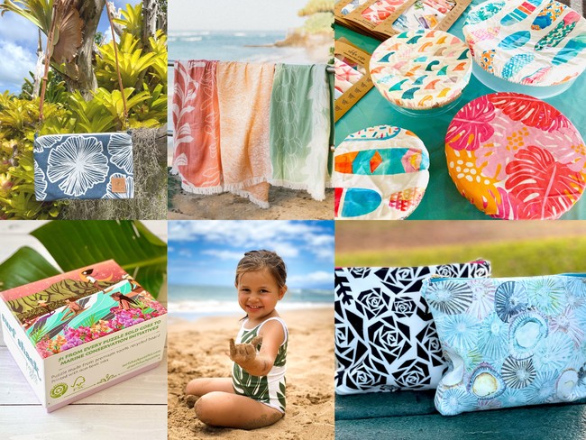 つなぐハワイ・マーケットは、つなぐハワイ・スタッフがハワイ在住アーティストのメイドインハワイ商品を厳選して集めたECサイト(日本から発送)。今回追加した商品は、ホーム雑貨(クッションカバー、鉢植えカバー、布ラップ等)やバック、ポーチ、ステッカー、アート等です。