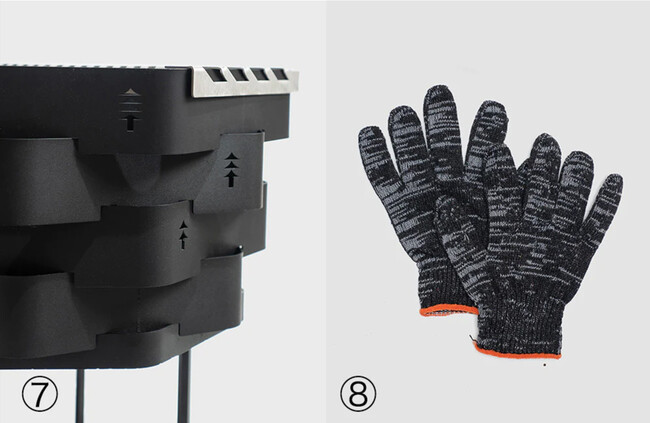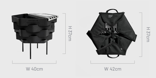さらに付属のステンレス製の焼き網を置くだけで、鍋やポットを置くだけでなく炭焼きもお楽しみ頂けます。アイアン製のため適度な重さがあり安定感も抜群。ある程度の風でも安心してお使い頂けます。丈夫な専用ケースとオリジナルのグローブが付属します。