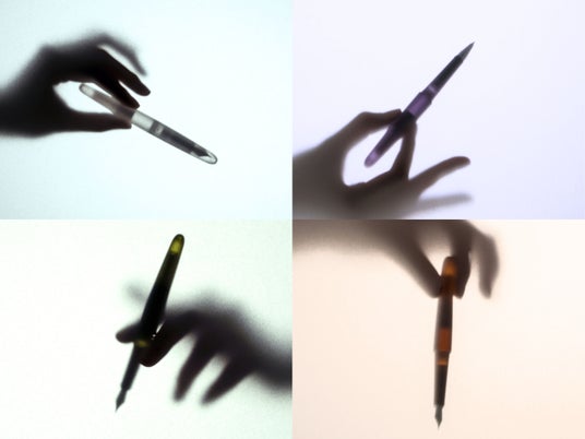 インクが半透明の軸から透けて見えることで完成するデザインです。