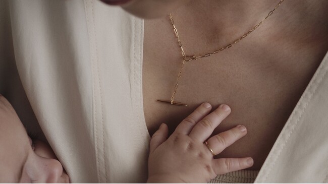 3種類のデザインから選べるベビーリング、2種類の素材と3つの長さから選べるチェーン、そして2種類のバータイプのチャームをご用意。ジェンダーレスなデザインのジュエリーのため、パートナーとお揃いで身につけていただくこともできます。(https://andvita.com/collections/maternityjewelry)