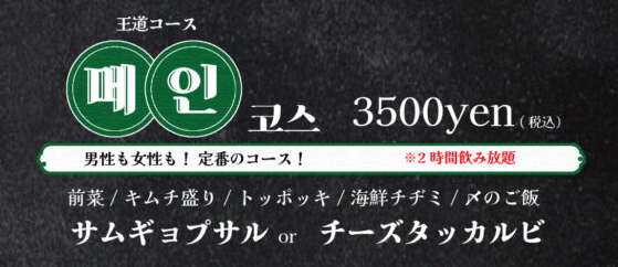 『小さな韓国あぷろ』のとっておきの料理がたっぷり食べられます。もちろん韓国ドリンクも盛りだくさんの飲み放題付き!!