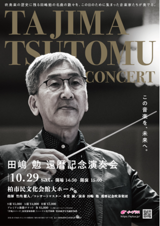 2022年10月29日(土)柏市民文化会館大ホールにて、作曲家 田嶋 勉 氏の還暦を記念し、一流のプロ演奏者によるその日限りのスペシャル吹奏楽団による演奏会が開催されます。