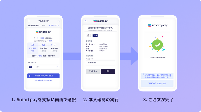 なおSmartpayでは快適なユーザー体験を重視しており、全てのユーザーの皆様が3DSのプロセスを経る必要はありません。これによりスムーズな取引体験が保証されます。