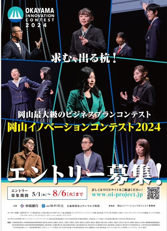 - 革新的なビジネスプランを持つ起業家や起業家精神を持った学生などを発掘する「岡山イノベーションコンテスト」