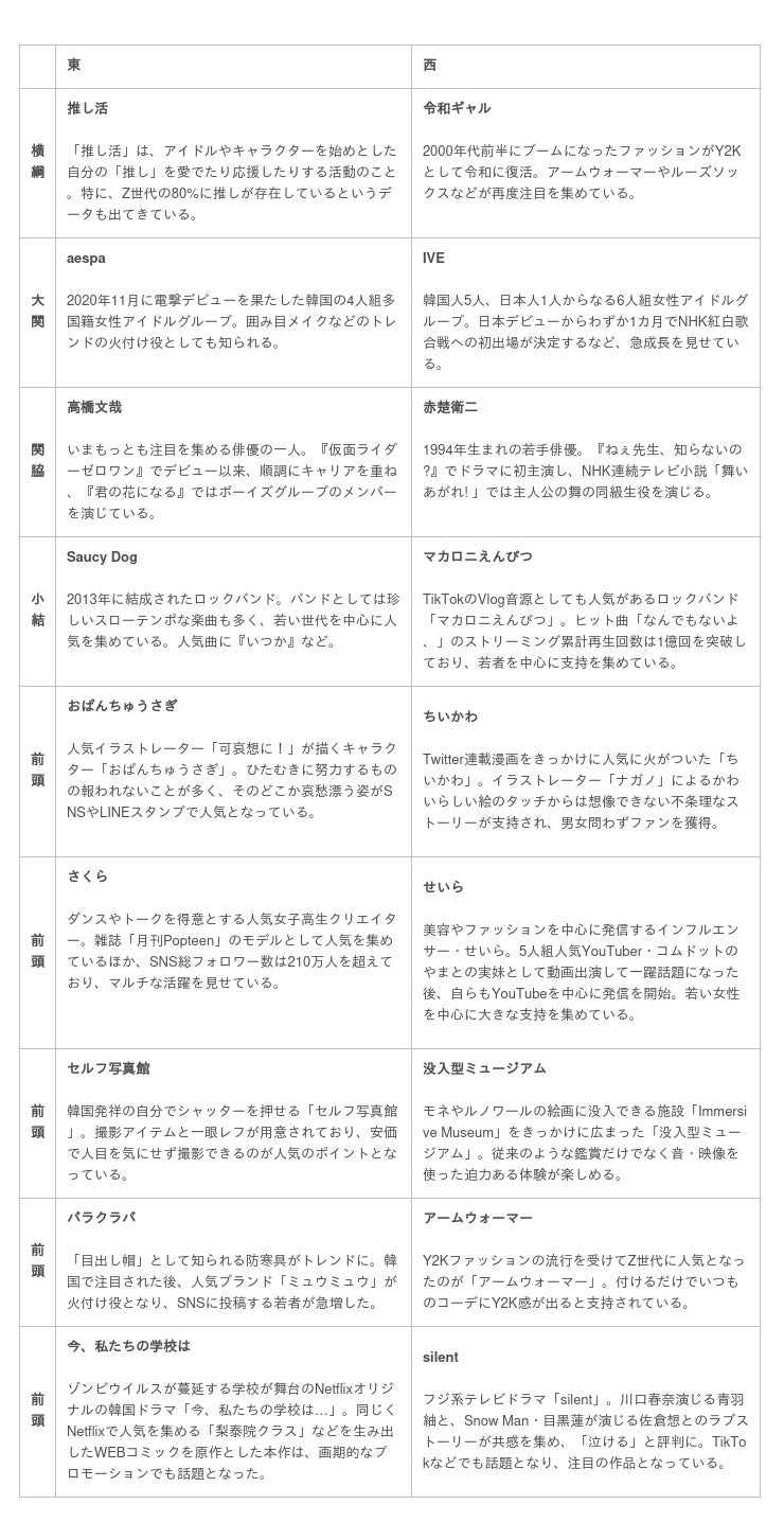 また、Y2Kに代表される平成レトロブームにより、「令和ギャル」が横綱に選出。SNSを中心に、平成のギャルの要素を残しつつアップデートされた令和ギャルが生まれました。