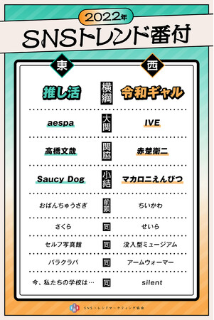 一般社団法人SNSトレンドマーケティング協会(代表理事:椎木里佳、本社:東京都千代田区)は、『2022年 SNSトレンド番付』を発表したことをお知らせします。