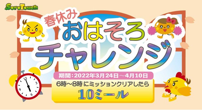 「おはそろチャレンジ」は2020年6月、コロナ禍で自宅自粛が促される中、不規則になってしまう生活リズムを整えたいという保護者の声を受け、少しでも子ども達が楽しく早起きにチャレンジできるようにと考えスタートしたイベントです。コロナ禍との共存が3年目を迎える中、今回は不規則になりがち春休みの生活リズムを整え4月からの新学年に備える目的として開催いたします。