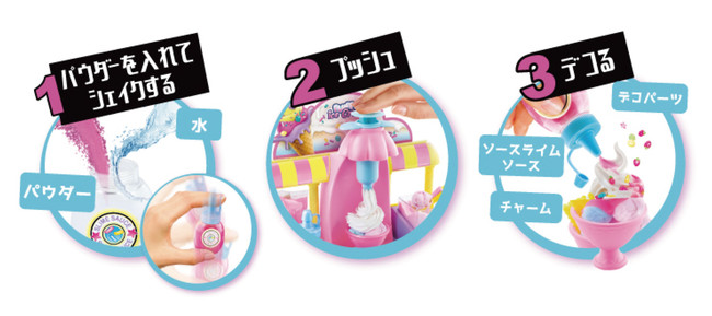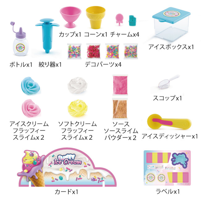 セットに付属のスライムソースやデコパーツで、アイスクリームに好きなトッピングを楽しめます!