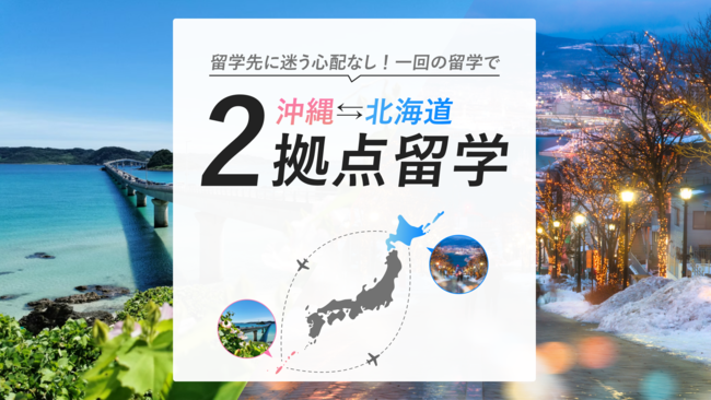 U-GAKUの「1回二拠点留学~沖縄と北海道、両方行ける留学~」では、留学途中でも留学先を変更することができ、1回の留学で沖縄北谷、北海道ニセコの2拠点での留学が可能なプログラムです。