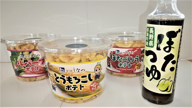 信濃町の特産品である「とうもろこし」「ルバーブ」、長野県の伝統野菜である「ぼたごしょう」を使ったスナック菓子を販売いたします。甘い、酸っぱい、辛いそれぞれくせになる美味しさです。