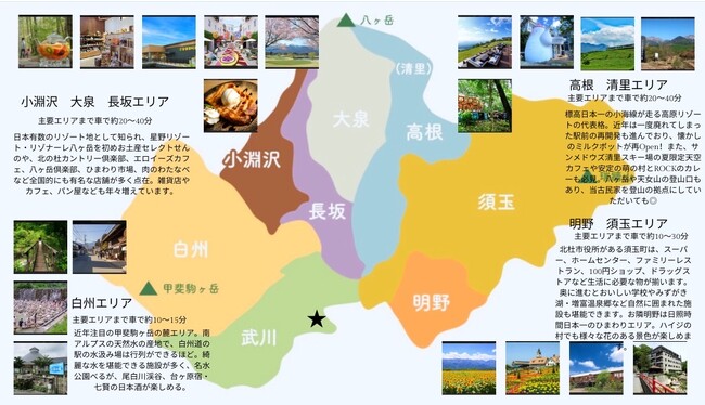 北杜市武川町は白州エリアに属し、リゾート地で人気の清里エリアから車で30分程度の場所にあります。真冬でも雪が積もりにくく、富士山も見えるロケーションで都内からの観光客でにぎわいます。なかでも、ブランド米である「武川米」をはじめとした地域の食が特徴的です。
