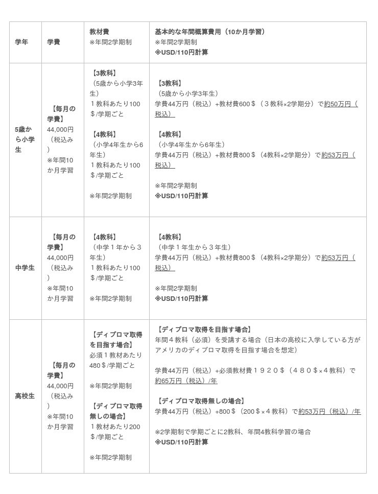 高校のディプロマ取得の例は、日本の学校に通いながら当スクールに通う方の場合に限定して計算しています。日本の高校で取得した単位をアメリカ側で認定することで、アメリカの取得する単位を最小限に調整可能となります。