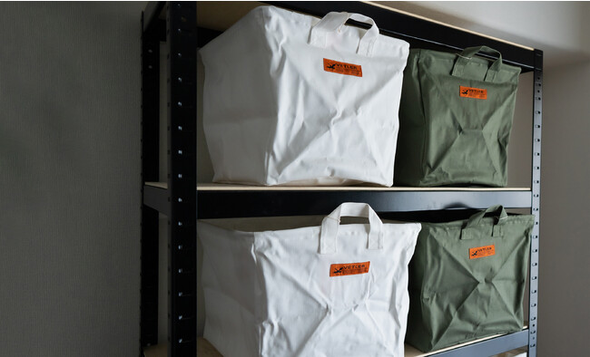 業務用ランドリーバスケットをモチーフに制作されたストレージを部屋に複数個並べておけば、一気に部屋の雰囲気をつくることができます。
