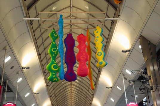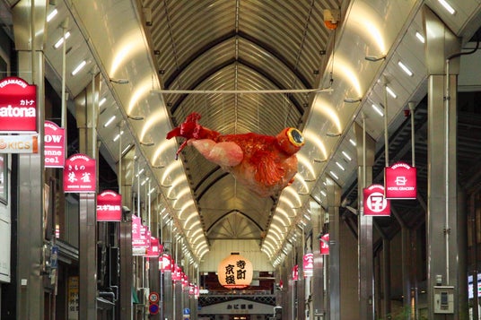 「寺町京極|商店街美術館」は、商店街が美術館になり、たくさんの人がアートに触れ、日常生活と文化・芸術がつながり合える場所を目指したアートプロジェクトです。2022年12月1日(木)から、ことくらす合同会社のコーディネートにより、職人や学生、地域団体が制作する様々なアート作品をアーケードに吊り下げ、展示を行っています。