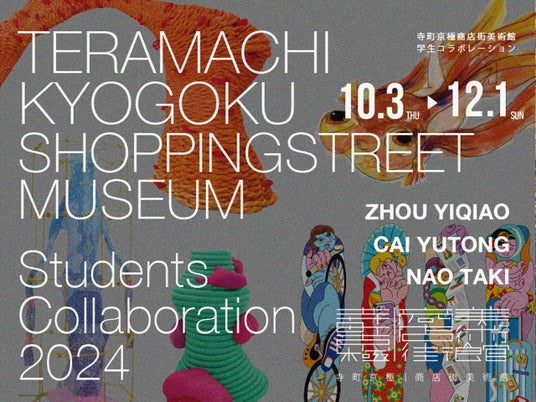 寺町京極商店街振興組合(京都市中京区、理事長:津田佐兵衞)は、商店街を舞台としたアートプロジェクト第8弾「寺町京極|商店街美術館・学生コラボレーション展 2024」を2024年10月3日(木)からスタートしました。