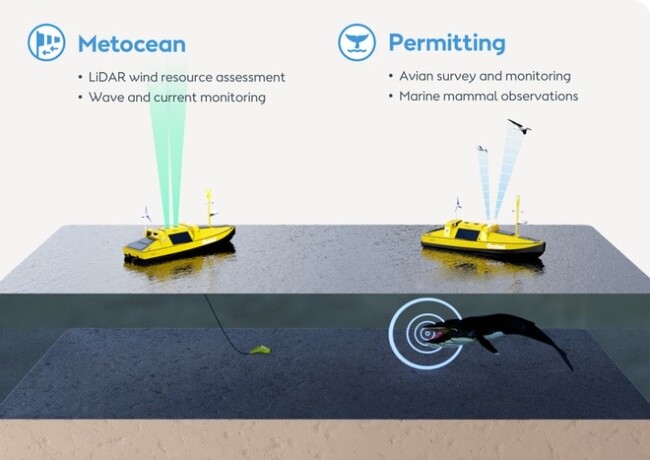 USVは汎用センサープラットフォームとして設計され、特に、風況、海底の状態、生物学的および生態学的測定値などの大量のデータを収集できます。USVによって収集される幅広い観測データは、洋上風力発電所建設前の初期の開発業務にとって非常に重要です。