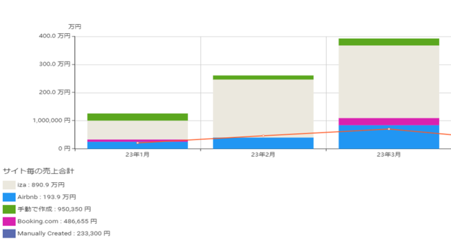 通常宿泊施設の集客はAirbnbやBooking.comなどのOTA(Online Trabvel Agency)という集客サイトを利用するが、当施設の集客ではOTAでの集客率はAirhbnbが20%、Booking.comが6%程度となっており、60%以上が直接集客による予約となっている。