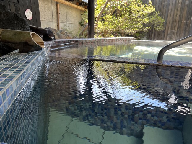 女性の大浴場では、露天風呂を2つに分け、通常の湯船と35度の源泉のみの湯船に新設。源泉100%掛け流しでの温冷交代浴「源泉温冷浴」を楽しめる。