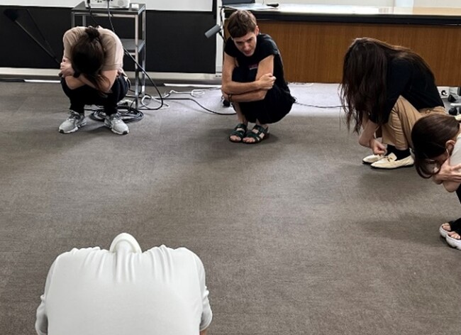 2日間の対面形式の講座では、国際コーチング連盟(ICF)PCC認定コーチでもある桜庭理奈が、社会環境が変化している現代に求められるリーダーシップやマネジメント、メンタリングやティーチングとコーチングの違いといった基礎をお話しすることから始まりました。講座では、次世代のリーダーシップとしてコーチングを日常生活で再現できるようになることを目指し、参加者が今の気持ちや沸き起こってきた感情を認識し言語化する、参加者同士の対話を通じで自身の思考や行動への理解を深めるといったアクションを繰り返し実践しました。その後、Body Storytellingの創設者であるSyv Bruzeau(シヴ・ブルゾー)氏が講師として登壇し、参加者は、身体的な感性を呼び覚ますボディ・ワークを通して、思考・心・身体の関連性に目を向けたり、意図を持った身体表現により、自己および他者への影響力を上げていく可能性についても、体験しました。