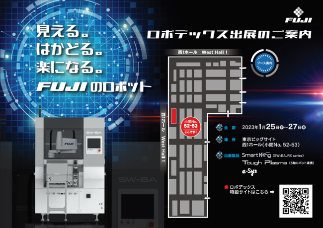株式会社FUJI(本社:愛知県知立市、代表取締役会長兼社長:曽我 信之、以下「FUJI」)は、2023年1月25日(水)~1月27日(金)に東京ビッグサイトで開催される「第7回 ロボデックス -ロボット[開発]・[活用]展-」に出展します。