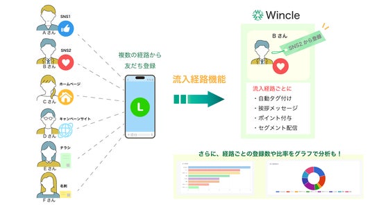 株式会社Otele(大阪府大阪市、代表取締役 植田大輝)は、2025年3月21日、LINE公式アカウントの機能を拡張するシステム「Wincle」(ウィンクル)の機能をアップデートいたしました。友だち追加時の流入経路を可視化し、測定と分析が可能となりました。