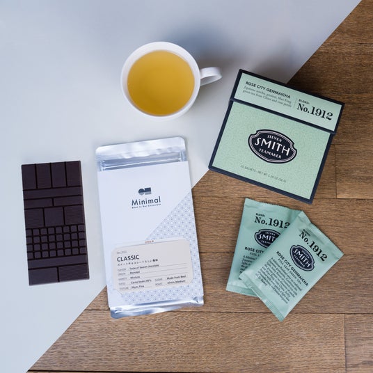 甘く食べやすい風味と滑らかな口溶けが特徴である「CLASSIC」は、粒度が細かく舌触りの良い、ミルキーな甘みとチョコレートならではの満足感を感じることのできる一枚。そこで一緒にペアリングをお楽しみいただくティーとして、軽やかな香ばしさと口の中に伸びていく心地よい甘みが特徴の新しいスタイルの玄米茶「No.1912 Rose City Genmaicha」をご提案。