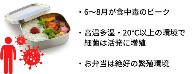 弊社では、特に働くパパが会社にお弁当を持っていく間に雑菌が繁殖してしまい、食中毒が起こる可能性に着目。朝の忙しい時間にお弁当の粗熱を十分に取り切ることができず、結果として雑菌が繁殖し、お弁当が痛んでしまうということにつながっています。