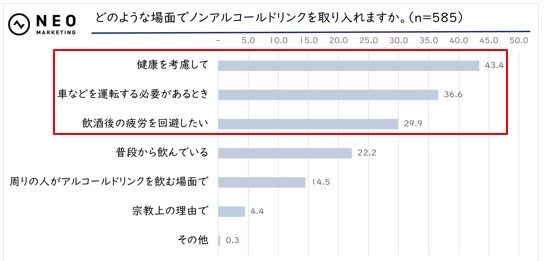 ノンアルコールドリンクを飲む理由(複数回答・n=585)