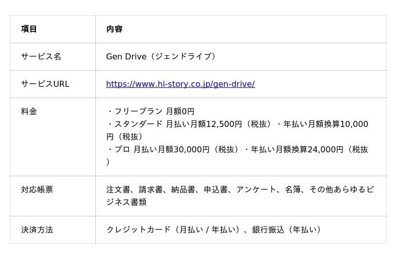 Gen Drive サービスサイト: https://www.hi-story.co.jp/gen-drive/