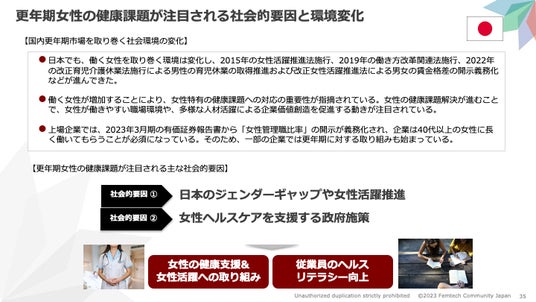 国内の更年期領域の動きとしては、2022年厚生労働省から更年期に関する調査も始まり、今後は更年期サービスを導入する起業など、企業数の増加が期待されます。