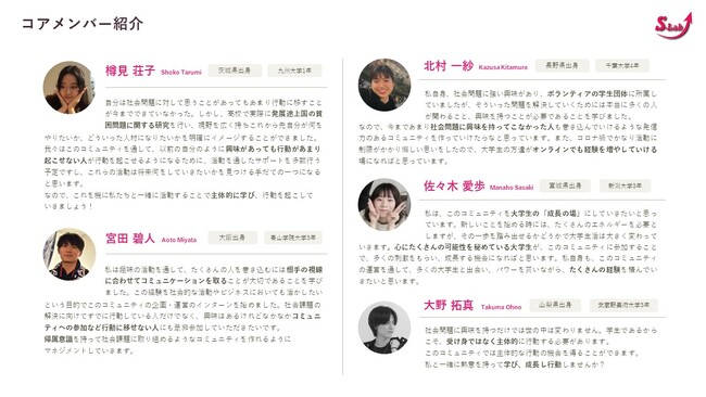 S-Labでは、以下のコアメンバーの大学生を中心に運営を行っていきます。
