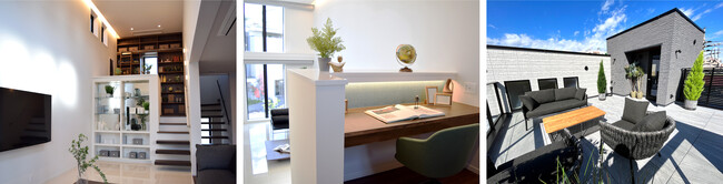LDKに設けた書斎スペースは中二階で集中できる環境と程よいプライベート感が共存しています。デスク正面向かい側には天井まで窓を設置しているため暖かい日差しが差し込みます。屋上は第二のリビングとして家族や友人とBBQや屋上キャンプが楽しめ、自宅で仕事もプライベートも充実する設備が整っています。
