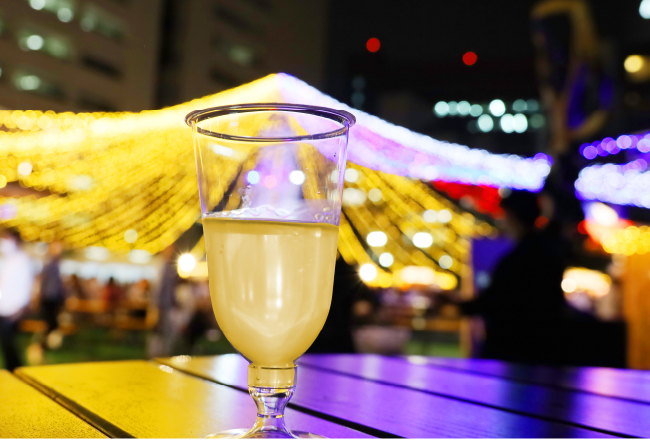 1.小洒落た路地裏ワイン酒場の雰囲気と夜空に広がる光のフランス国旗で非日常の空間を演出 新旧が融合した美しい港町ボルドー。 街のいたるところにある粋な酒場やレストランでは、たくさんの人々が美味しいワインと料理に舌鼓を打ちながら、穏やかな会話を弾ませています。 まさにその小洒落た路地裏ワイン酒場の雰囲気を、本場ヨーロッパから直輸入したヒュッテを設置し、さらに夜空に広がる光のフランス国旗で非日常の空間を演出します。