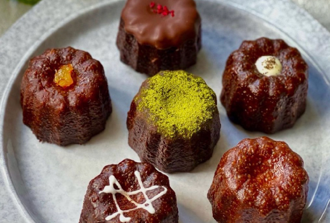 6.ボルドー生まれのスイーツ「カヌレ」 フランス・ボルドー発祥の伝統的お菓子「カヌレ」。その歴史は16世紀頃まで遡り、ワインの生産過程で生まれたお菓子とあって相性がよく、親しまれています。外側はカリッと香ばしく内側はしっとり食感。今回、福岡市西区のカヌレ専門店「cocolate(ココレート)」から、ボルドー・ショコラ・アールグレー・カフェラテの4種をご用意。甘さ控えめなオトナの味。