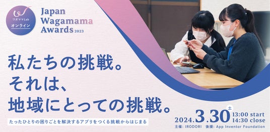 全国の自治体と連携し、若者たちがかえれる地元をつくる事業を推進している株式会社IRODORIは、ボストンに拠点を置くApp Inventor Foundationの後援のもと、「Japan Wagamama Awards 2023」を2024年3月30日にオンラインで開催いたします。
