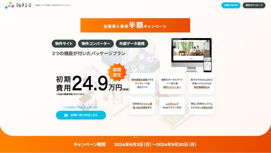 株式会社プライムクロスは、売買仲介向けに「物件コンバーター」「物件サイト」「外部データ連携」の3つの機能がパッケージになったマルチユース「スモールスタートパッケージ」を、キャンペーン期間に申し込みいただいたお客様限定で、初期費用半額にてご提供させていただきます。