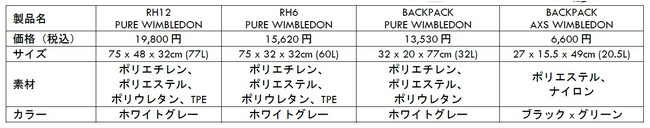 WIMBLEDONコレクション製品ラインアップ